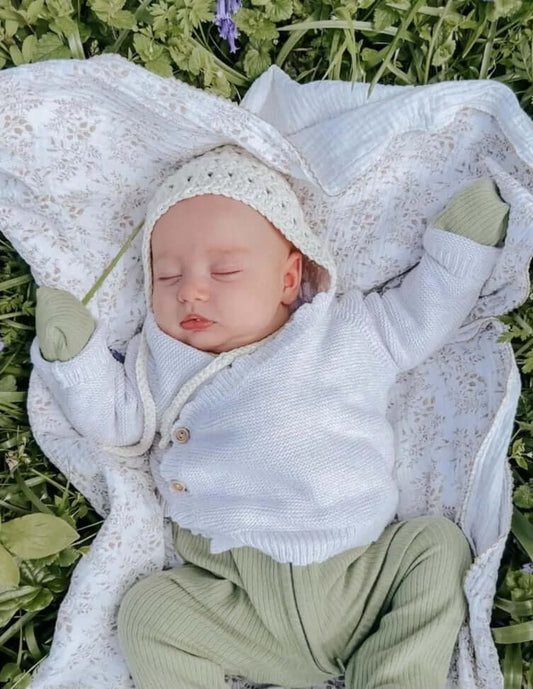 Crocheted in soft natural cotton, our clothing is thermoregulating, cleverly keeping your baby warm in winter and cool in summer.