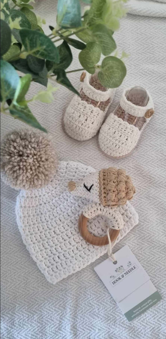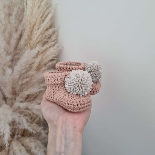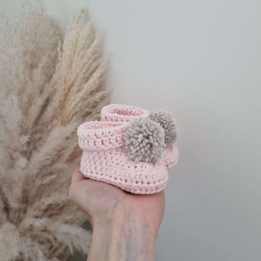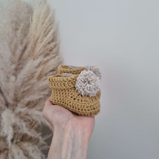 Baby Hat and Pom Pom Booties (Oatmeal)