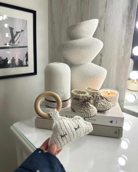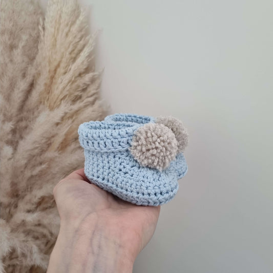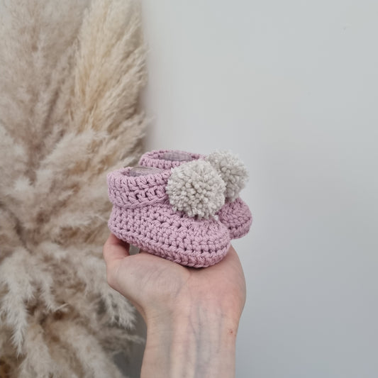 Cotton Baby Hat and Pom Pom Booties (Stone)