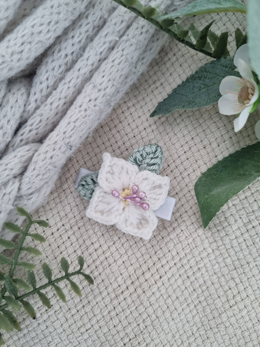 Ivory Pearl Blossom Crochet Hair Clip