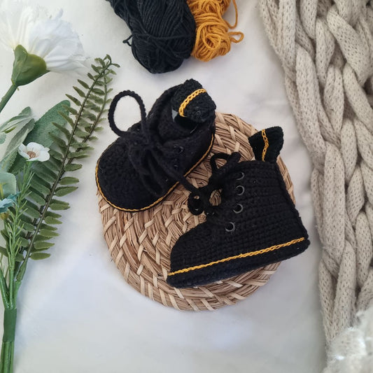 Baby Crochet Booties - Converse Style Black