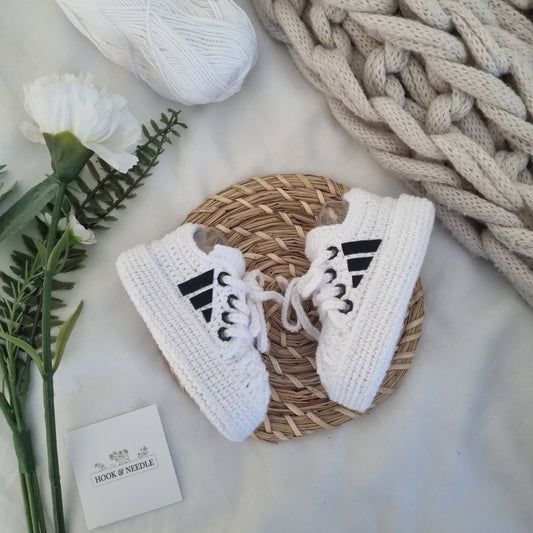 Baby Crochet Booties - Converse Style White